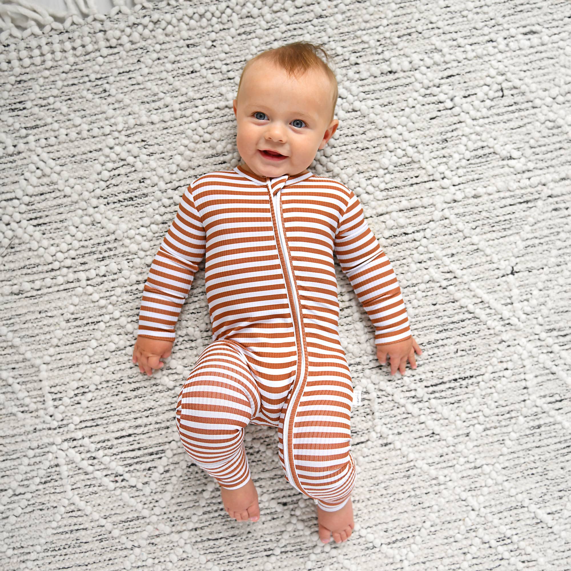Chase Brown Ribbed ZIP Bamboo Baby Sleepies Little