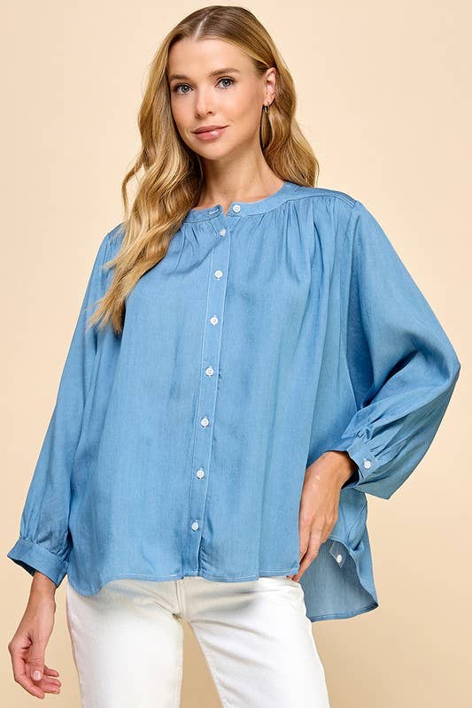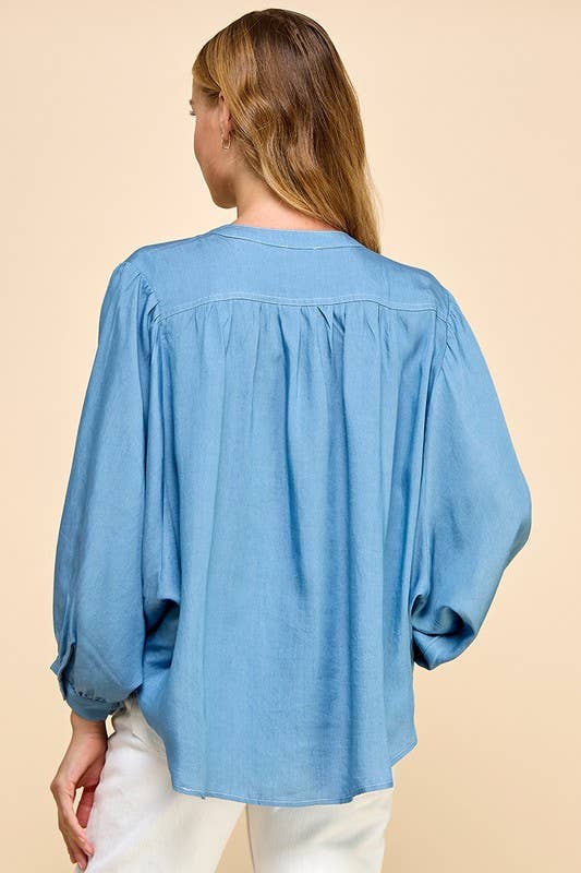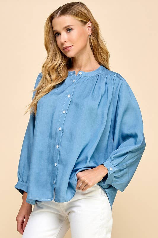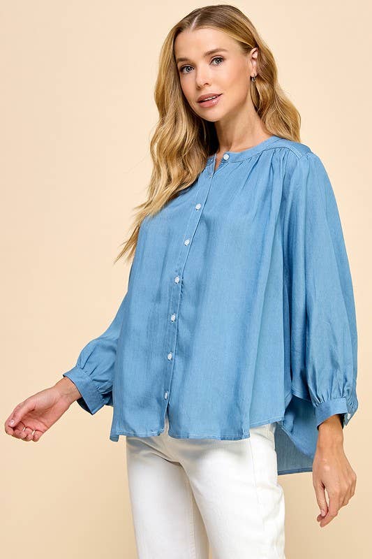 Relaxed, refined, and effortlessly chic, this oversized Tencel blouse is designed for movement and comfort. Featuring long batwing sleeves and a classic button-up front, it drapes beautifully for a flattering silhouette. Soft, breathable, and lightweight, it’s perfect for layering, tucking, or wearing loose for an easy, polished look.