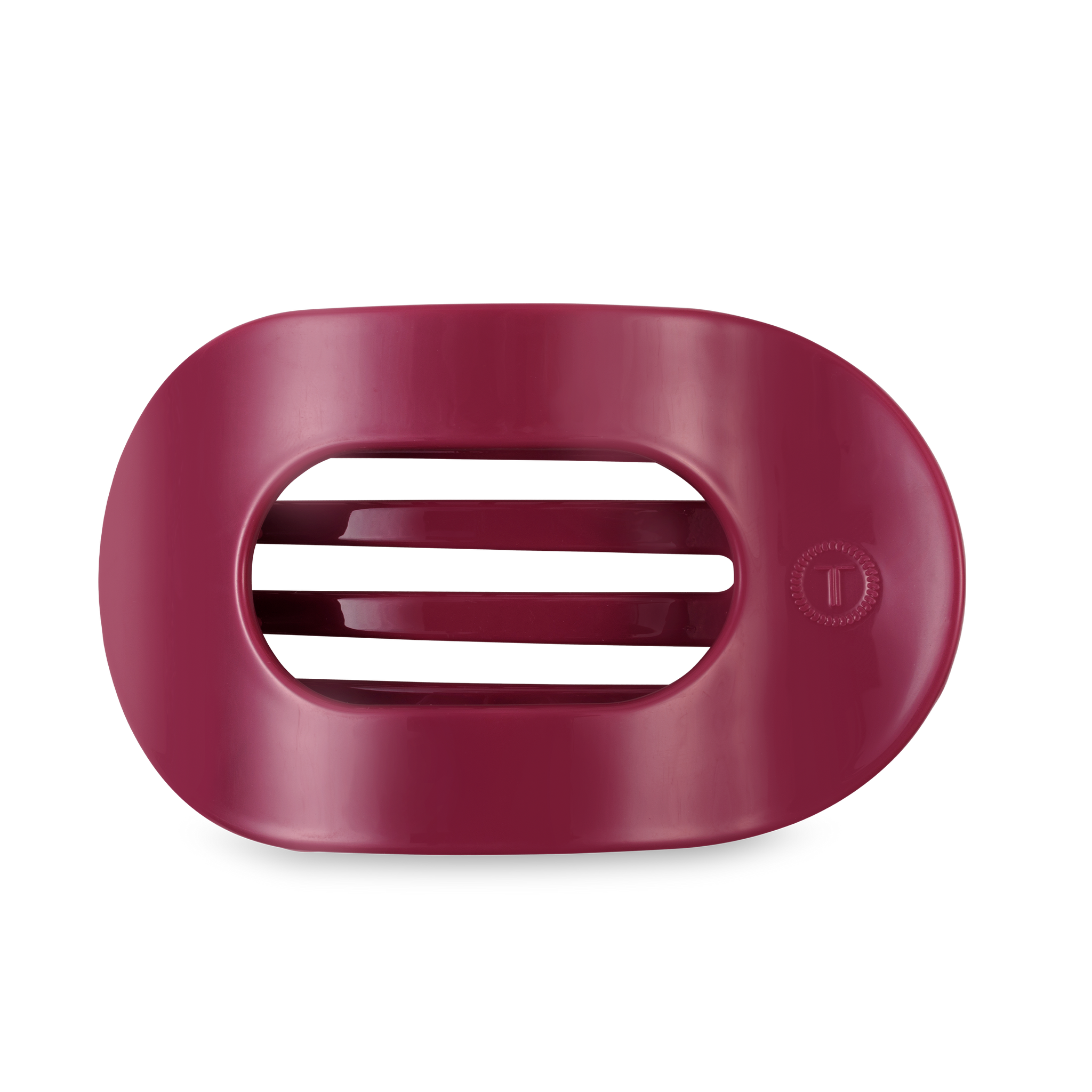Lay flat and relax with the new TELETIES Wild Side Large Flat Round Hair Clip in Deep Magenta. This hair clip is designed to allow you to lay back flat, do yoga, or sit comfortably in a seat with a headrest, and it is made with the same material that is nearly unbreakable. Lay down flat with comfort Bendable teeth for a secure yet gentle hold Lightweight, durable, and suitable for all hair types Perfect for all-day wear—from sunup to sundown