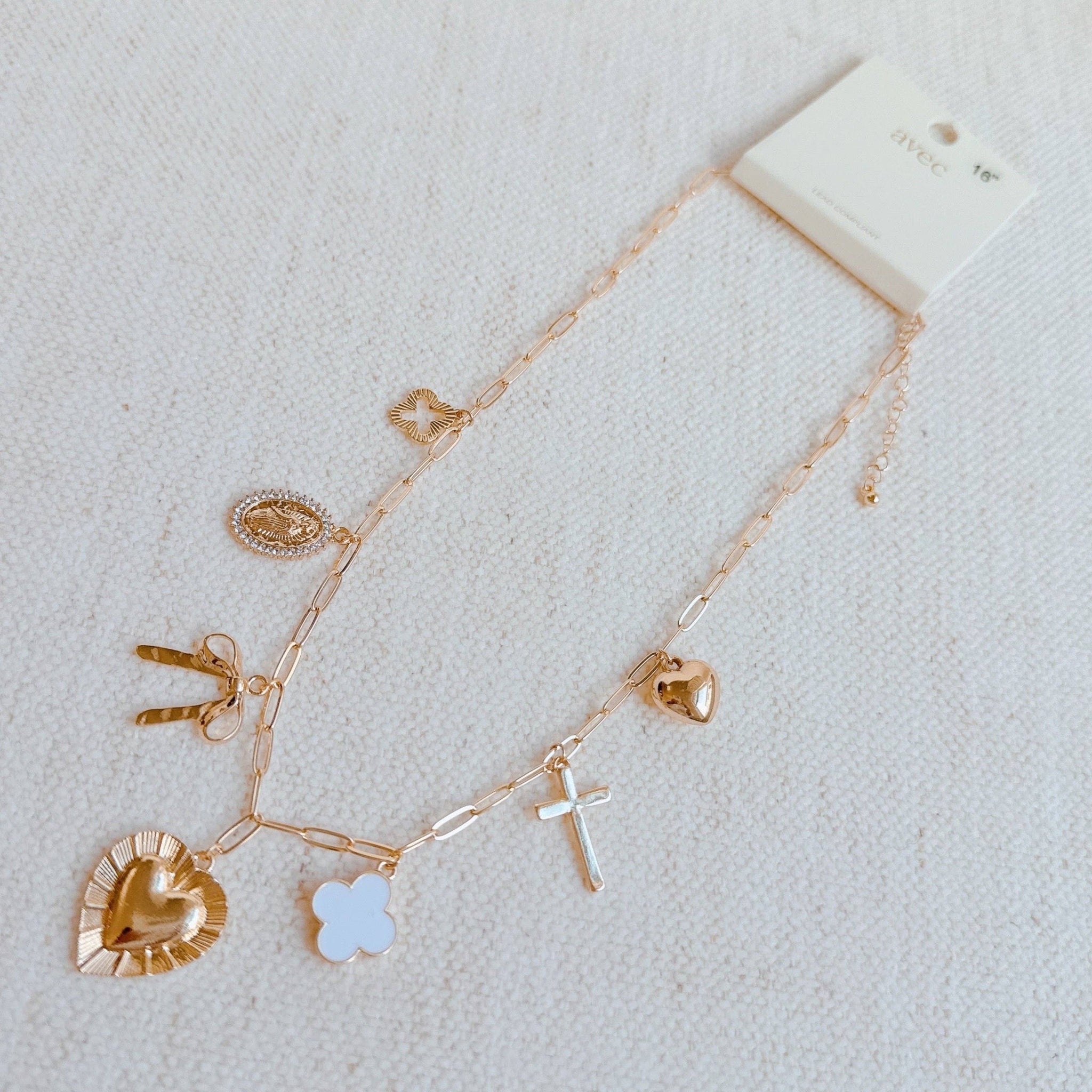 Experience the lovely and romantic charm of our Big Heart 7 Charm Necklace. Adorned with a stunning big heart and six charming charms, this necklace is the perfect accessory for any outfit. Express your love and style with this beautiful piece.