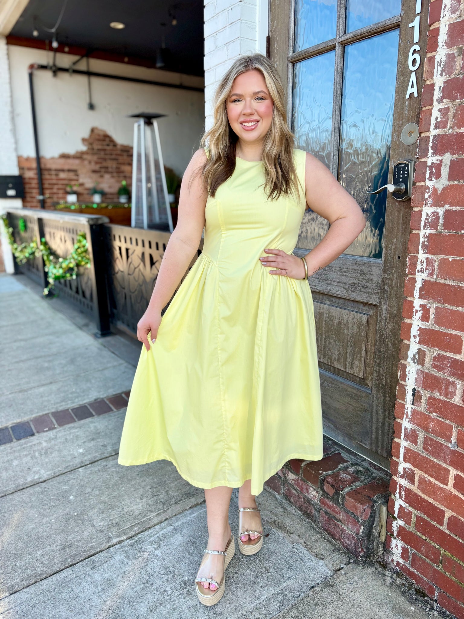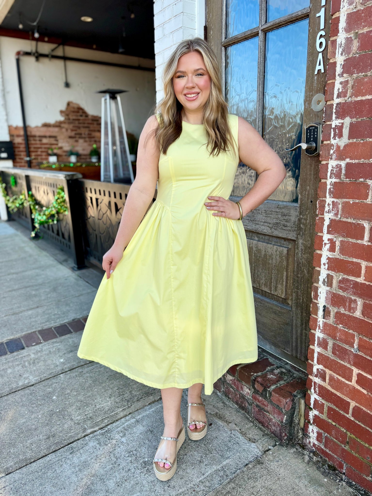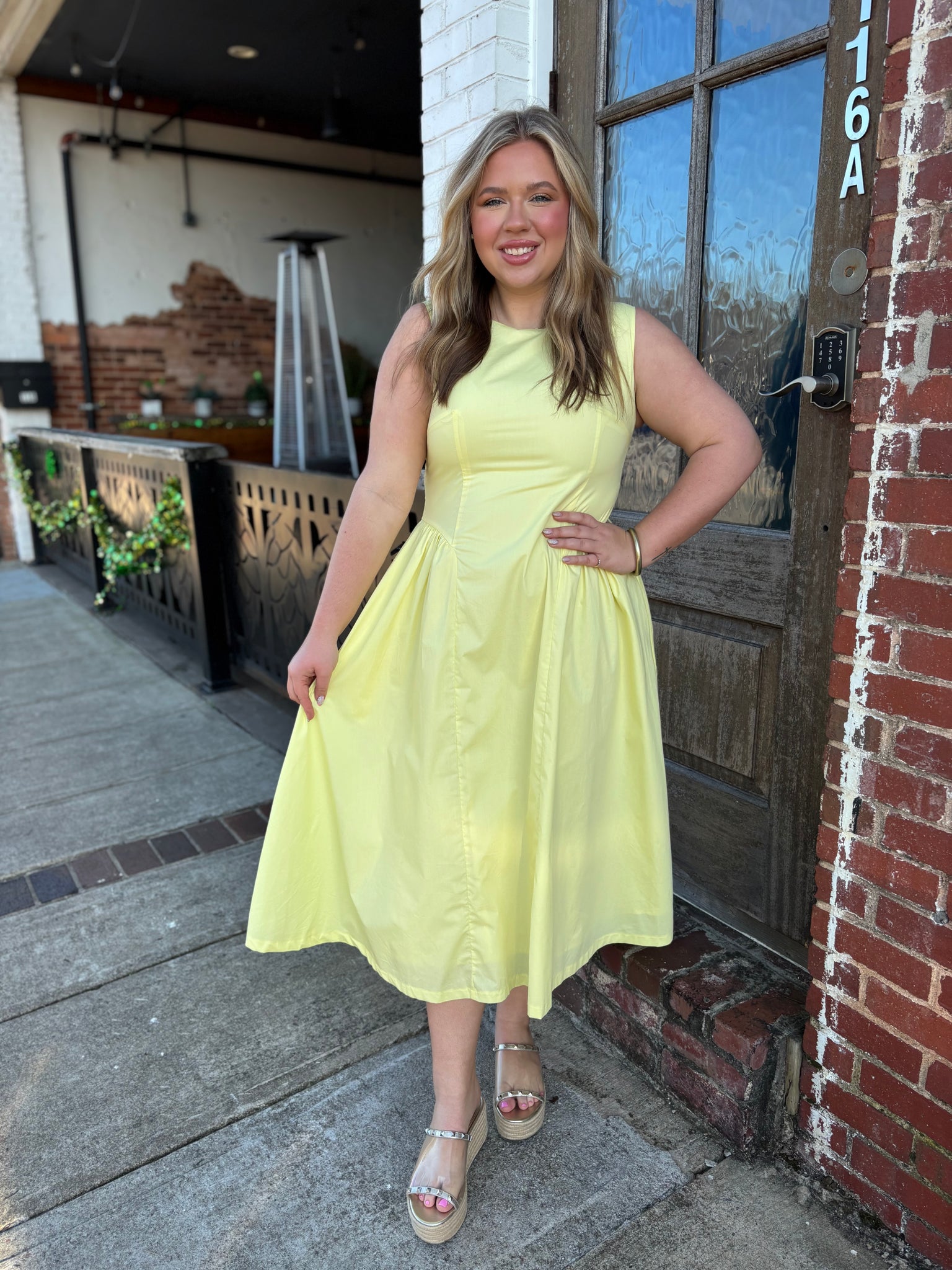 Bright, effortless, and made for sunny days ☀️ The Sunshine Stroll Gathered Waist Midi Dress features a flattering gathered waist and breezy midi length for an easy, feminine silhouette. Made from lightweight 100% cotton, this sleeveless dress is breathable and comfortable for warm days while still looking polished. Perfect for brunch, church, vacations, or everyday summer outings.