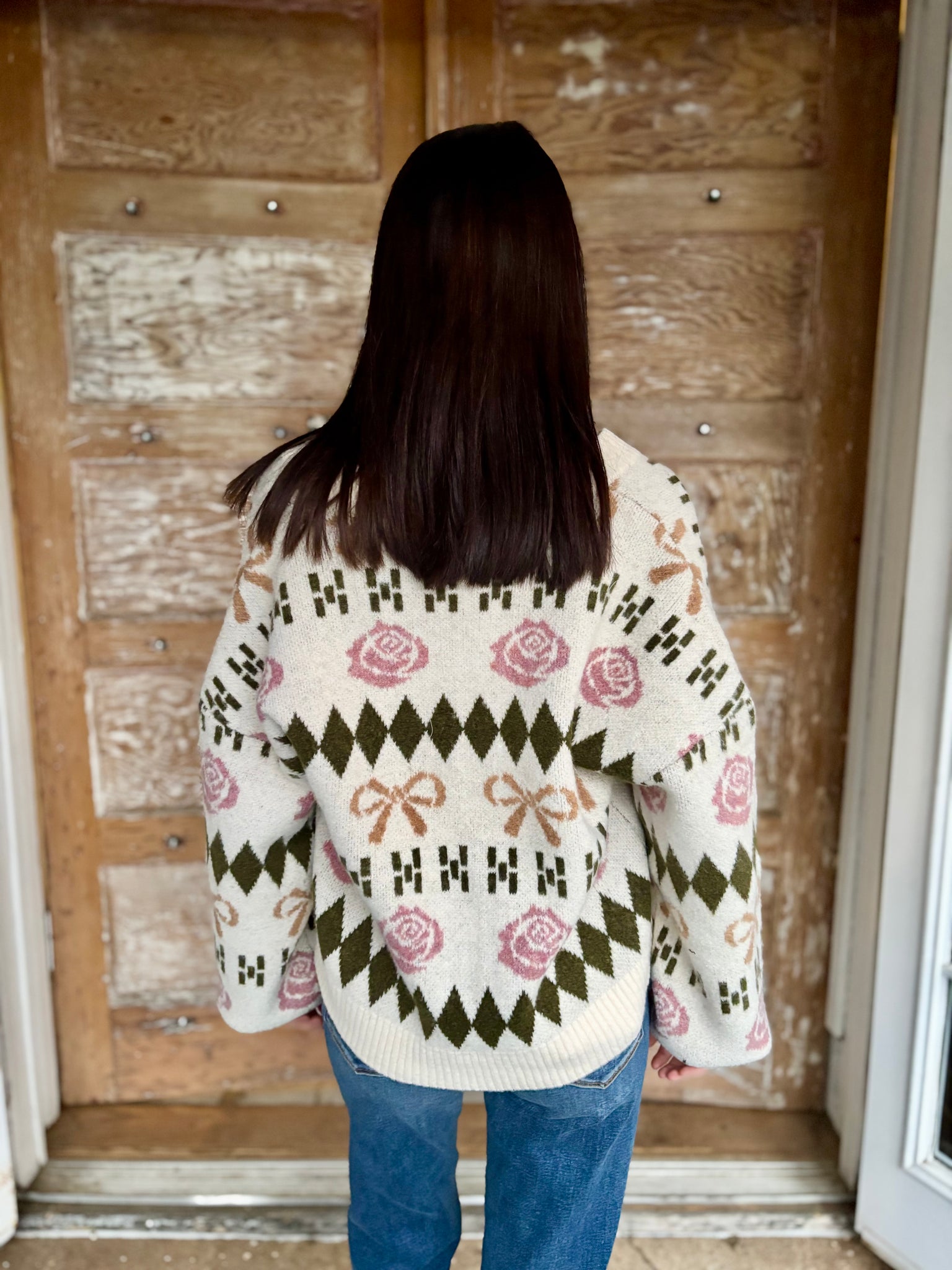 Wrapped in whimsical details, the Blossom & Bows Vintage Cardigan blends retro patterns with modern comfort. Its oversized sleeves, soft knit texture, and mix of floral and geometric designs create a statement piece that still feels wonderfully wearable. Whether you’re dressing up a casual outfit or adding a touch of charm to your day, this cardigan brings warmth and personality in every stitch.